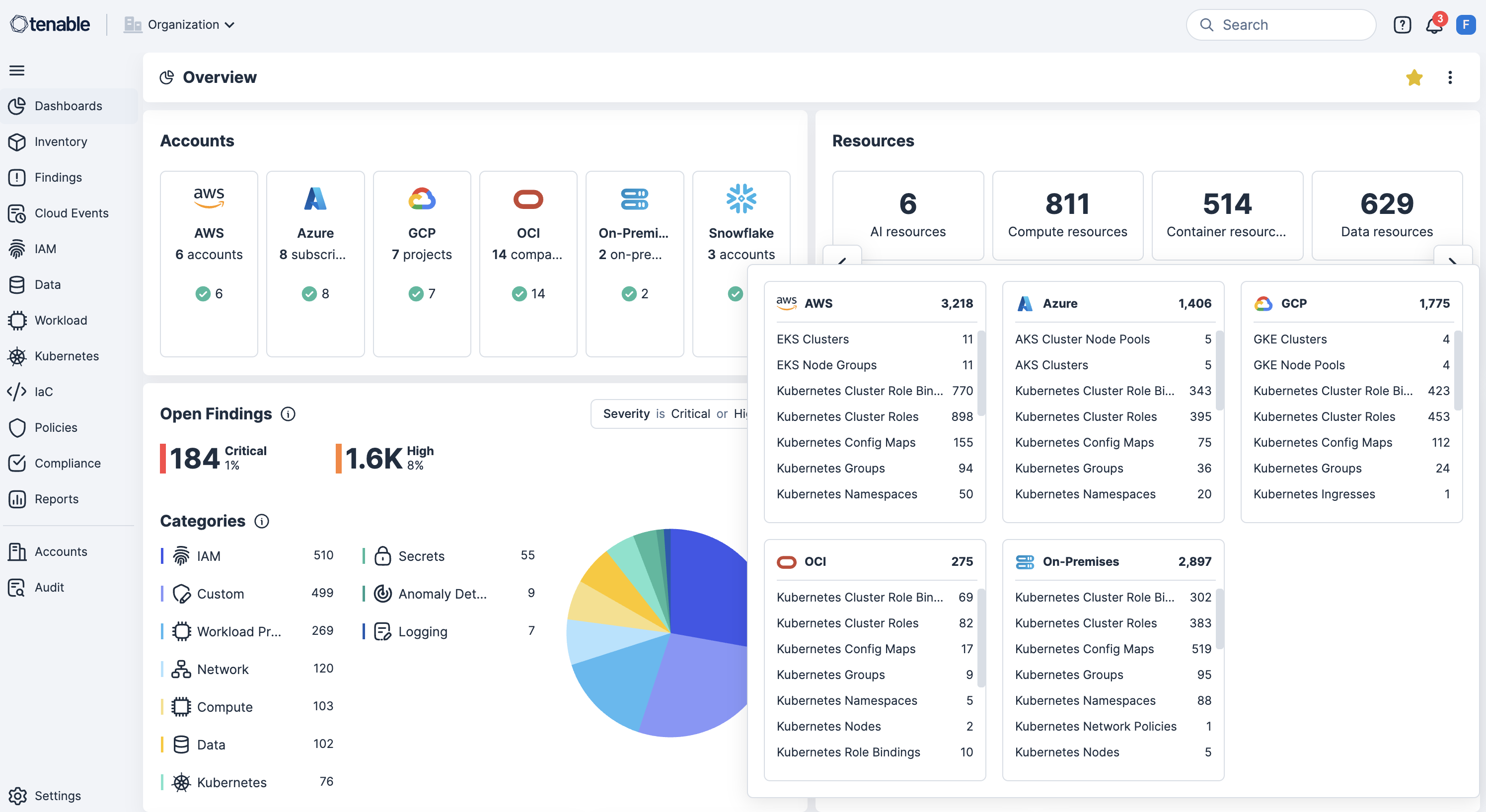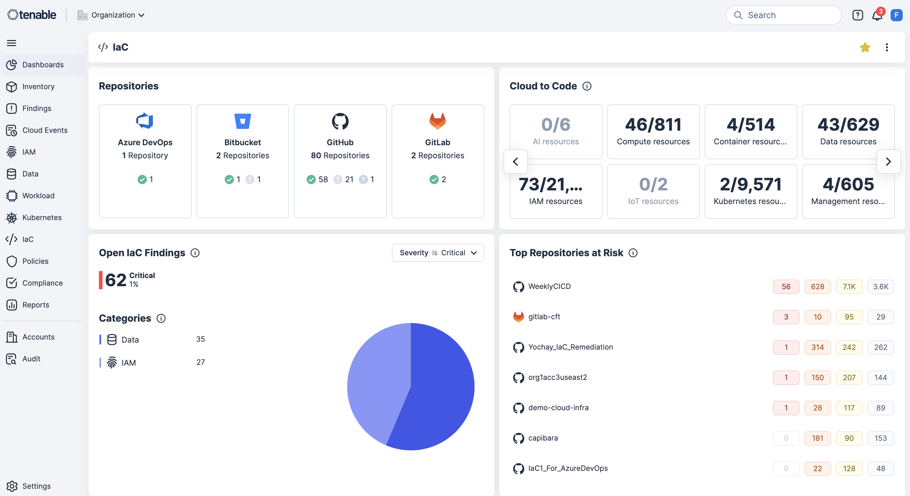 Identifica e correggi facilmente le configurazioni errate. Le configurazioni errate del cloud, come i bucket di archiviazione aperti, i ruoli troppo permissivi o le impostazioni di rete non sicure, sono la causa principale delle minacce, della mancata conformità e della perdita di dati. Utilizza Tenable Cloud Security per rilevare continuamente e prioritizzare questi rischi mediante la scansione dell'infrastruttura come codice (IaC) e nei livelli di runtime e identità.