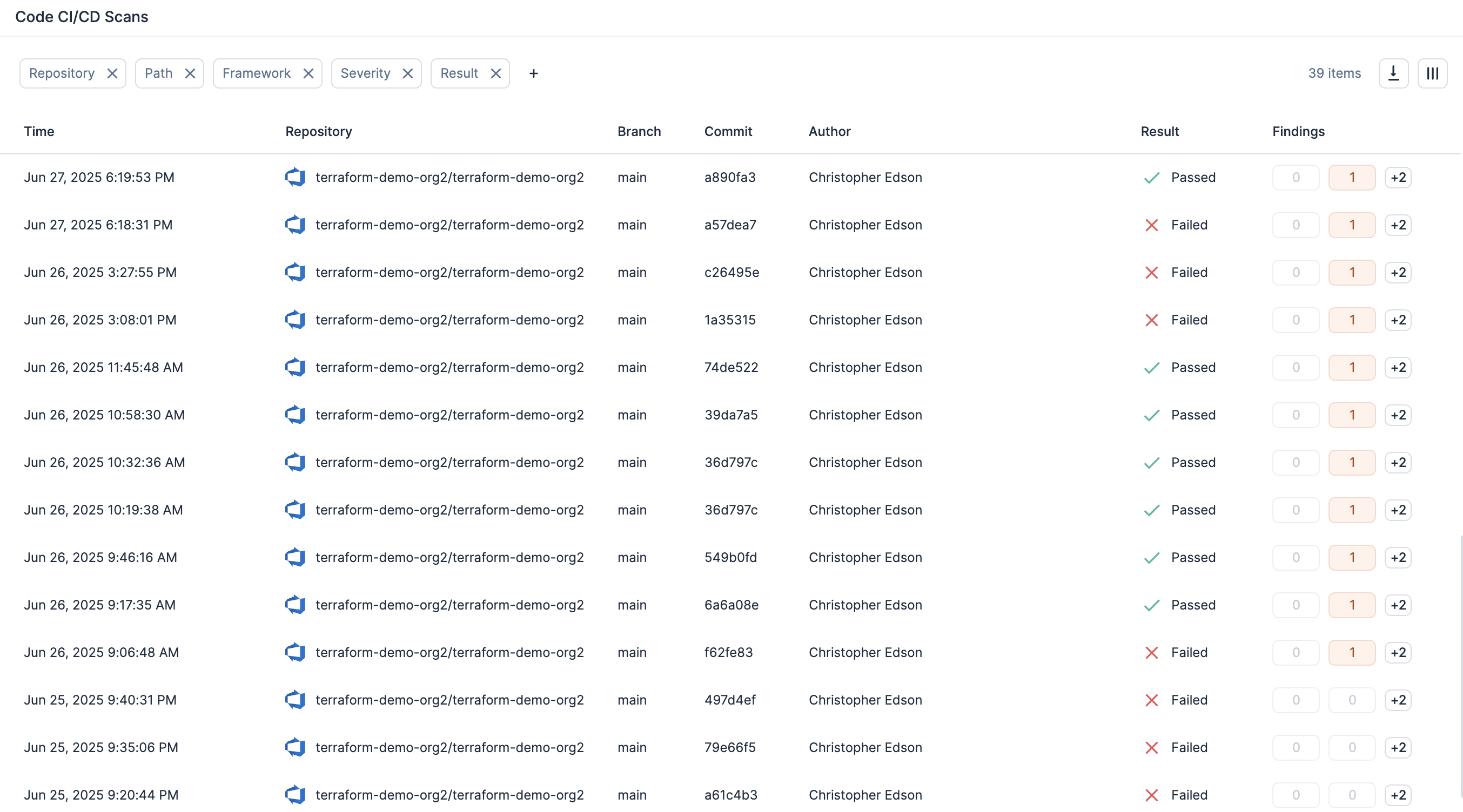 Integra la scansione IaC con gli strumenti delle pipeline CI/CD pipeline per identificare le configurazioni errate prima della distribuzione, ridurre la rielaborazione e prevenire le deviazioni della sicurezza.